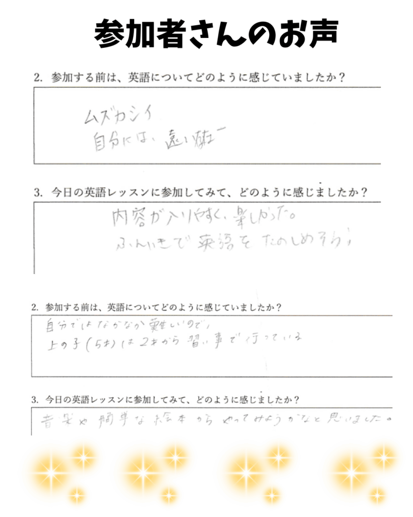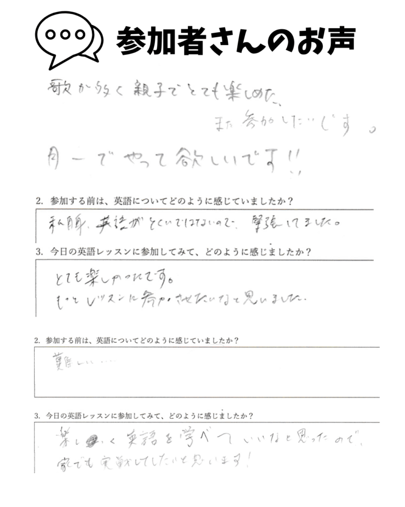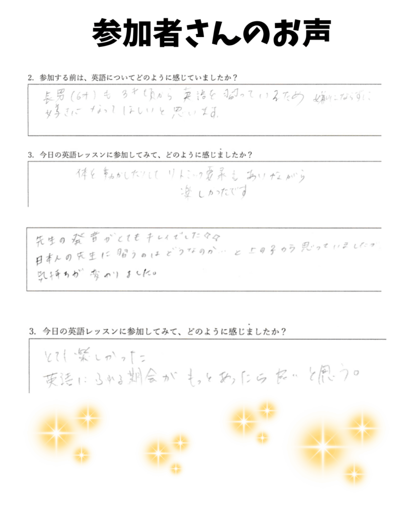 - 「英語が苦手でも親子で安心して楽しめた!」