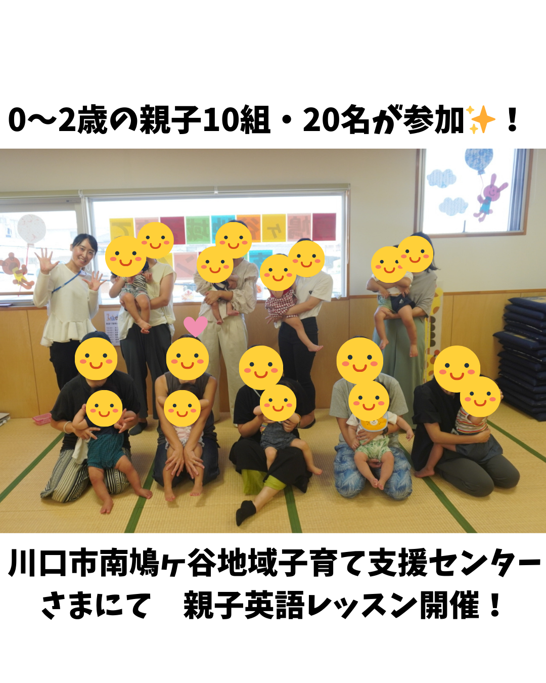 - 川口市・南鳩ヶ谷地域子育て支援センター様での親子英語レッスンには、0〜2歳親子10組20名が参加